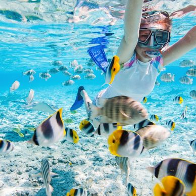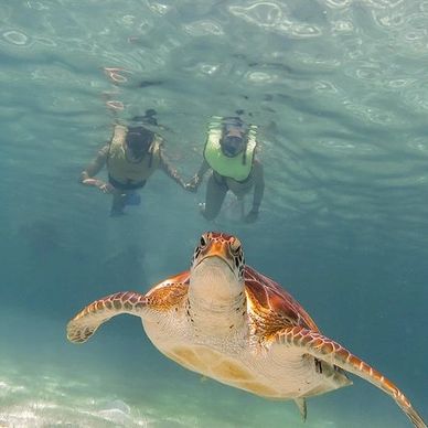 Visit Akumal Bay, aka Turtle Bay, for the chance to snorkel among sea turtles in their natural habitat, as well as fish, coral, rays, and rock formations. Then head to a cenote in the Yucatan rainforest to swim.
