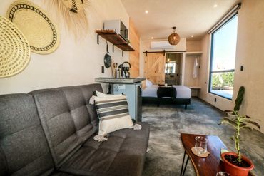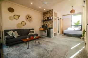 Villa Emilia Tulum, where modern-meets-bohemian chic, consists of ten studio apartments, each designed for the vacation renter’s comfort and needs. Each studio is crafted by local artisans with regional décor and showcases floor-to-ceiling windows that provide natural light, perfect for recharging the energy needed to explore Tulum.